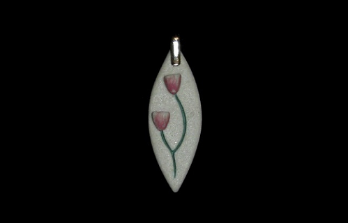 Cerâmica branca com 2 tulipas cor de rosa em alto relevo